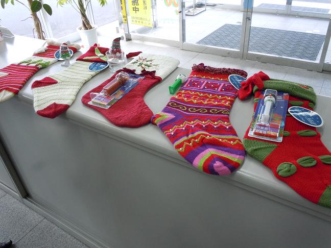 それぞれデスク近くに靴下を飾って、クリスマスプレゼント募集中!!